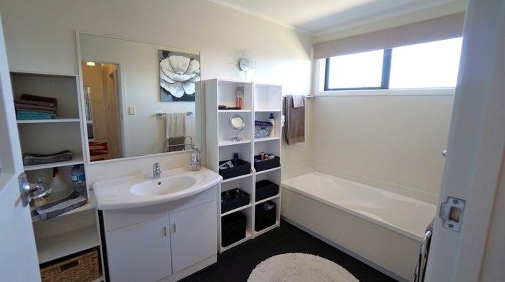 Three bedrooms, two bathrooms, open plan living with polished tongue and groove flooring.