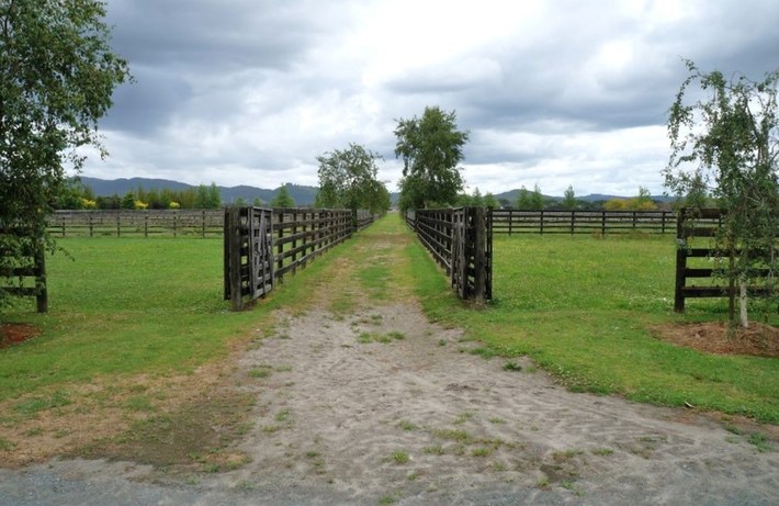 This 20 acres of flat, fertile pasture is paddocked, raced and planted with now mature trees.